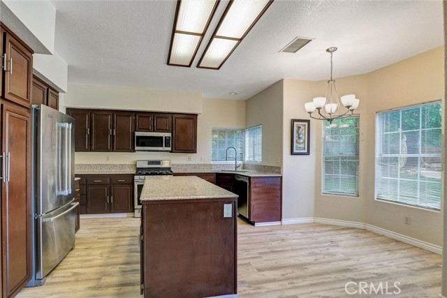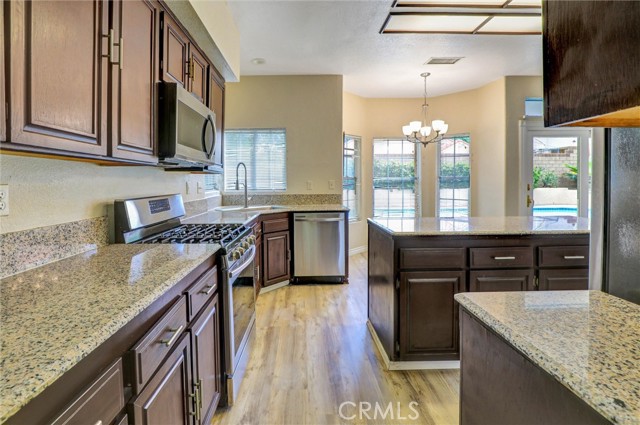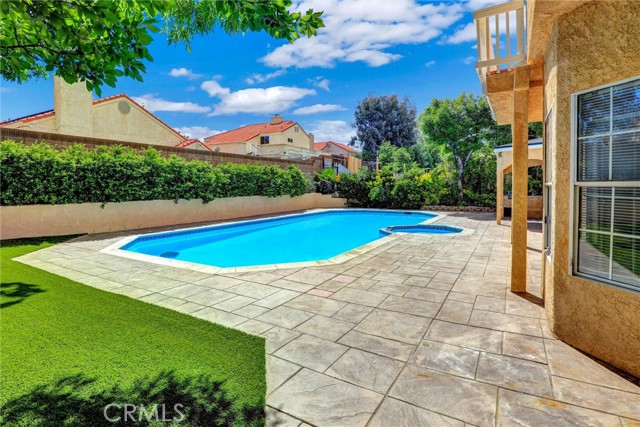 Spacious 5-bedroom, 3-bath pool home on a quiet cul-de-sac in desirable Palmdale! Offering approx. 2,672 sq ft of living space on a ~7,180 sq ft lot, this home features a light-filled interior with soaring ceilings and an inviting, open layout. The main level offers multiple living and dining areas, including a formal dining room with French doors—ideal for a home office, playroom, or additional living space. The spacious kitchen with center island opens seamlessly to the family room with fireplace, creating a natural gathering space. Sliding glass doors provide direct access to the backyard, featuring a private pool, covered patio, and outdoor entertaining area—perfect for indoor-outdoor living. Ideal for both homeowners and investors, the flexible floor plan is well-suited for multi-generational living with ample space for extended family, guests, or separate living areas. Conveniently located near schools, shopping, and commuter routes. Don’t miss this versatile opportunity!