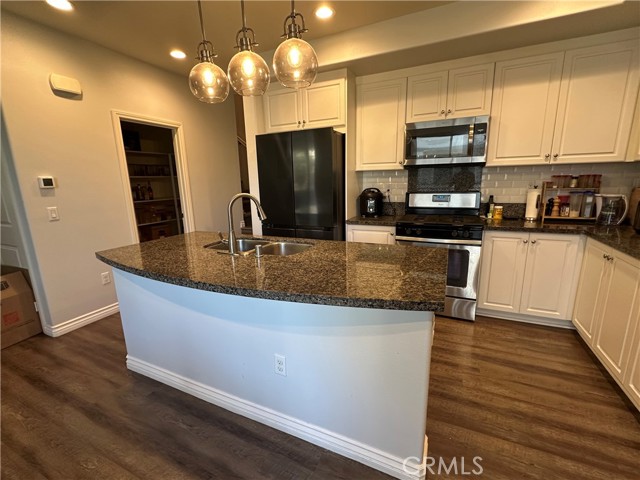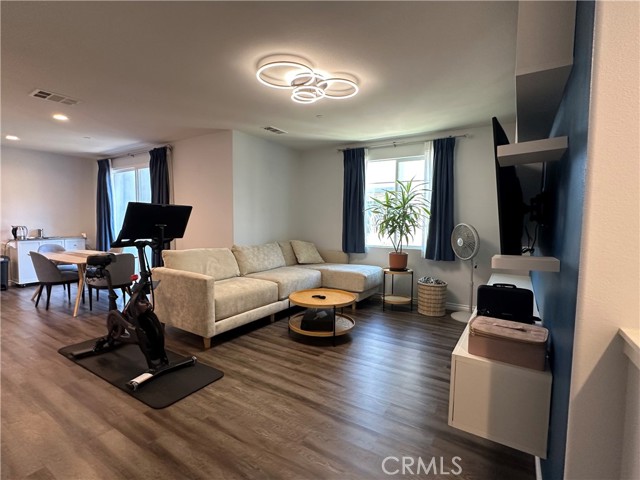 Welcome to this beautiful 3-bedroom, 3-bathroom townhome in the Orchards Community in Upland! This multi-level property features modern amenities, comfortable living spaces, and thoughtful upgrades throughout. The spacious kitchen features pendant lights above the island with granite countertops and stainless steel appliances. A generous walk-in pantry provides ample storage for all your kitchen essentials. The open-concept living area is bright and inviting, highlighted by a 5-ring LED ceiling light with remote control. Each bedroom features a retractable ceiling fan with built-in lighting, all remote-operated. The primary bedroom and a second-floor bedroom both offer walk-in closets. All three bathrooms feature tubs with waterproof, machine-washable shower liners. Central heating and air conditioning ensure year-round comfort. A private balcony offers the perfect spot for relaxation. The two-car garage is a standout feature, complete with built-in cabinetry for organized storage, a whole-home water conditioning system, and a Level 2 EV charger — ideal for electric vehicle owners. Conveniently located near Upland's vibrant downtown with restaurants, shops, freeway access, and the Metrolink station. Community amenities include pools, outdoor BBQ, clubhouse, kids' playground, and ample guest parking. An exceptional opportunity to own in one of Upland's most sought-after communities.