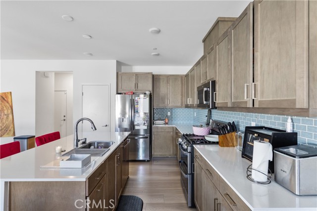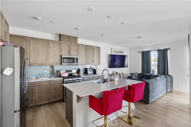 Welcome to this beautiful home, located in the beautiful Citro community. This modern duet style home offers 4 bedrooms, 2.5 bathrooms, thoughtfully designed living space that blends comfort, style, and efficiency.The open concept main level creates a bright and inviting atmosphere, with a spacious great room that flows effortlessly into a contemporary kitchen featuring stainless steel appliances, ample cabinetry, and generous counter space, ideal for both everyday living and entertaining. Sliding glass doors open to a private outdoor area, enhancing the indoor outdoor lifestyle. Upstairs, the primary suite offers a relaxing retreat with an en suite bathroom, dual vanities, and a walk in closet. Three additional bedrooms provide versatility for a variety of living needs. Additional features include owned solar, energy efficient systems, central air conditioning, and an attached two car garage. The Citro community offers access to a pool, spa, clubhouse, parks, and scenic walking trails, creating a well rounded living experience. Conveniently located near major transportation routes, shopping, dining, and everyday amenities, this home offers the opportunity to enjoy modern living in a thoughtfully planned community.