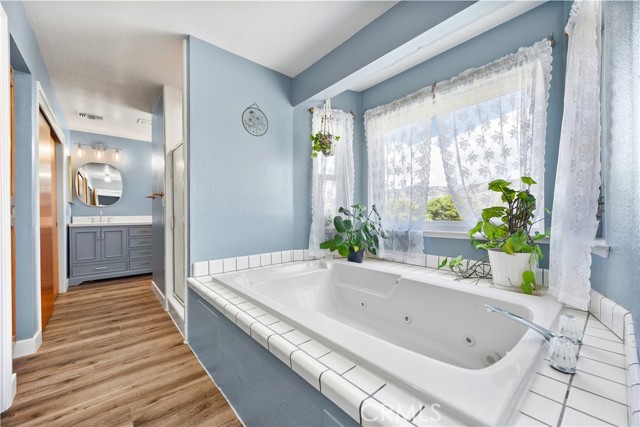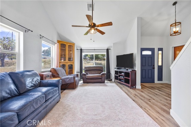 Spacious Tehachapi living at its best! This 4-bedroom, 3-bath home offers over 2,500 sq ft of comfortable space, featuring wood laminate flooring throughout and a versatile layout. Enjoy formal living and dining rooms, plus a separate family room with a cozy wood-burning stove. One bedroom and a full ensuite bath are conveniently located downstairsperfect for guests or multi-gen living. Recent upgrades include new AC and windows, along with beautifully updated bathrooms. The solar system comes with a continuous true-up credit, helping keep energy costs low. Situated on a large lot, this home offers both space and efficiency in a desirable setting.