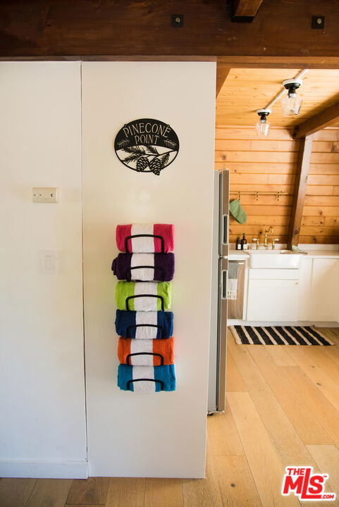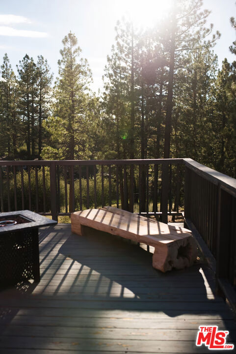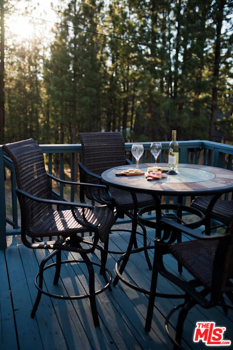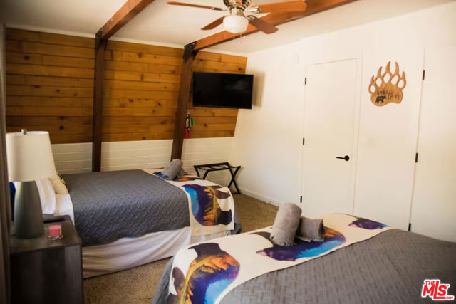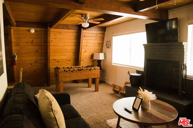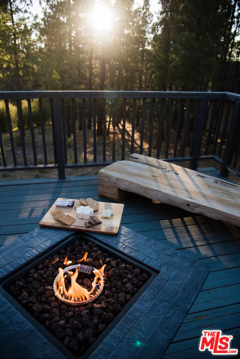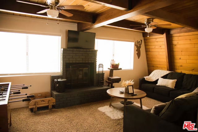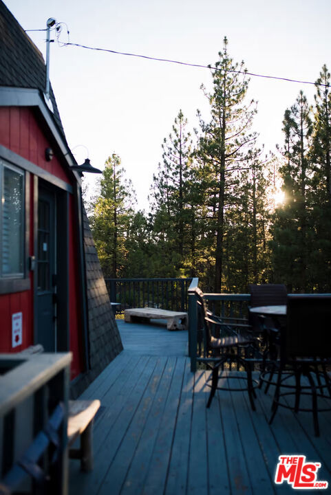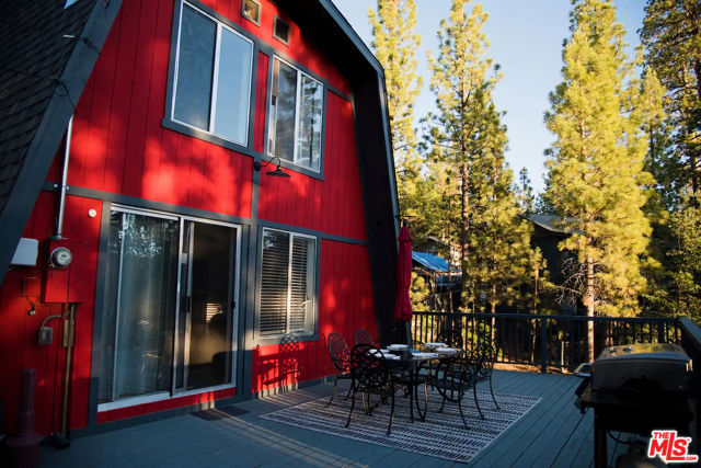 Pinecone Point! A Fully Furnished Cabin Near Big Bear Lake with a Successful Short-term Rental Business with Steady Bookings! Located near the center of Big Bear Lake, this 2-bedroom, 2-bath mountain home offers convenient access to local shops, restaurants, recreation, and the lake. The property comes fully furnished and includes a spacious deck with hot tub, outdoor seating, BBQ grill, and fire pit, creating a comfortable indoor-outdoor living environment. The main living area features a wood-burning fireplace, Smart TV, and game area with foosball table. The kitchen includes full-size stainless steel appliances along with a variety of small appliances and cooking essentials. The dining area provides seating for six with the option for outdoor dining on the deck. Both bedrooms are located on the second level and include ceiling fans and Smart TVs. The primary bedroom features a king-size bed and portable A/C unit. The second bedroom includes two queen beds. The home includes two bathrooms: one on the main level with tub and shower, and one upstairs with a walk-in shower. Additional features include high-speed internet, keyless entry, exterior storage areas beneath the home, and driveway parking. Exterior security cameras are installed around the perimeter of the property. Conveniently located approximately one mile from Big Bear Lake and The Village, with nearby access to Snow Summit, Bear Mountain, Alpine Slide, Big Bear Alpine Zoo, and other recreational amenities. Property is currently operated as a successful short-term rental. Furnishings may be included with the sale. Existing service providers may be available for referral.
