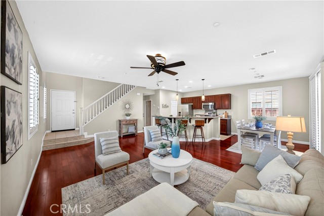 An incredible opportunity to own this beautiful 3 bedroom, 2.5 bath home located within the exclusive and highly desirable River Walk Vista gated community. Designed with everyday living in mind, this home features a bright, open-concept main level where the living, dining, and kitchen areas flow seamlessly—creating an efficient layout perfect for both entertaining and daily routines. In addition to three generously sized bedrooms—including a private primary suite with en-suite bath—you’ll find a versatile upstairs den/loft that adds valuable functional space. Whether you need a home office, playroom, media area, or potential fourth bedroom conversion, this flexible space adapts to your lifestyle. Enjoy outdoor meals and s'mores by the fire pit in your private backyard. HOA amenities include a community pool, playground, and picnic area. Conveniently located near parks, schools, shopping, and restaurants. Centrally located with easy access to the 91, 15, 60, and 215 freeways, making commuting to Orange County, Los Angeles, and surrounding Inland Empire cities a breeze.