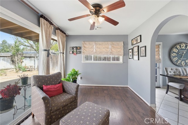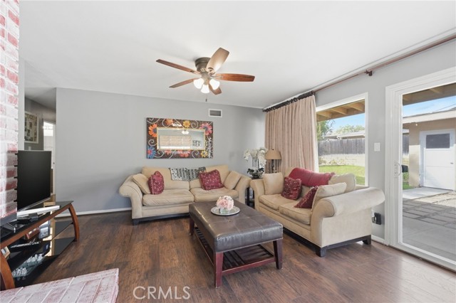 Welcome to 5230 Old Mill Rd, Riverside a charming single story home nestled in a quiet, tree lined neighborhood with inviting curb appeal and mature landscaping. Inside, you’ll find a light filled layout featuring rich wood style flooring, fresh neutral paint and a cozy living room with a painted brick fireplace. The kitchen offers white cabinetry, tile countertops, ample storage, recessed lighting and a window over the sink, flowing into a dedicated dining area. Bedrooms are spacious with wood flooring and ceiling fans, while the bathroom showcases custom tile and a unique vanity for added character. Additional highlights include dual pane windows, central HVAC, indoor laundry and built-in storage. The backyard offers multiple patio areas, a large open yard and a detached garage with potential for ADU or flexible use. Conveniently located near shopping, dining, parks, schools and with easy 91 freeway access. This home blends comfort, charm and opportunity.