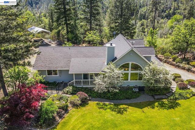 Tucked away in the peaceful community of Junction City-often called the Shangri-La of Trinity County-this stunning custom Craftsman-style home offers the perfect blend of comfort, privacy, and natural beauty. Boasting approximately 2,003 square feet, this thoughtfully designed 3-bd, 2-bt home features rich hardwood flooring throughout the living and dining areas, complemented by tile flooring in the kitchen. The kitchen is a standout with Corian countertops, custom cabinetry, and a functional layout ideal for everyday living and entertaining. A wall of windows in the living room invites in abundant natural light while showcasing the home's lush, landscaped surroundings. Enjoy year-round relaxation in the screened-in sunroom, or step outside and take in the serene setting & with access to nearby Trinity River thru USFS land that backs up to the property, offering unmatched privacy and endless outdoor opportunities right out your back door. Additional highlights include a detached 1-bedroom mother-in-law unit-perfect for guests, rental income, or multi-generational living-along with two large workshops for all your projects, a two-car garage, and a separate tractor garage, on 10 acres.