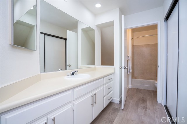 Turnkey, private, and perfectly positioned this beautifully updated 2 bedroom end unit offers one of the most compelling opportunities on the market today. Welcome to 1445 Brett Place #107, a quiet, rear facing end unit that delivers exceptional privacy and a peaceful setting away from street and parking noise. Inside, you are greeted by a bright, modern interior filled with natural light and thoughtfully upgraded throughout. Features include luxury vinyl flooring, custom shutters, recessed lighting, and quartz countertops, creating a clean and contemporary feel. The well designed layout offers a comfortable living area and an updated kitchen equipped with newer appliances, pull out shelving, and a pantry for added convenience. In unit laundry with newer appliances adds everyday ease. Additional upgrades include a newer HVAC system and a smart alarm system, providing comfort, efficiency, and peace of mind. Upstairs, you will find two primary suites, ideal for flexible living arrangements, whether for guests, roommates, or a home office setup. The community offers a resort style atmosphere with a pool, spa, sauna, clubhouse, and recently updated BBQ areas. This gated complex also features ample guest parking along with two assigned underground parking spaces. Move in ready with no projects needed, just bring your furniture and settle in.