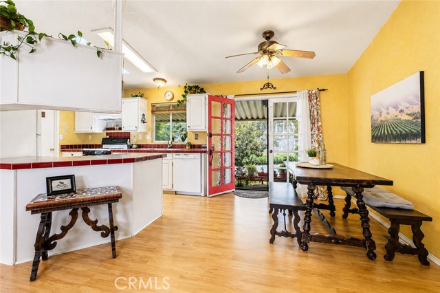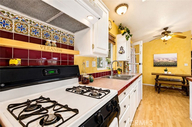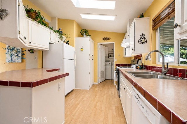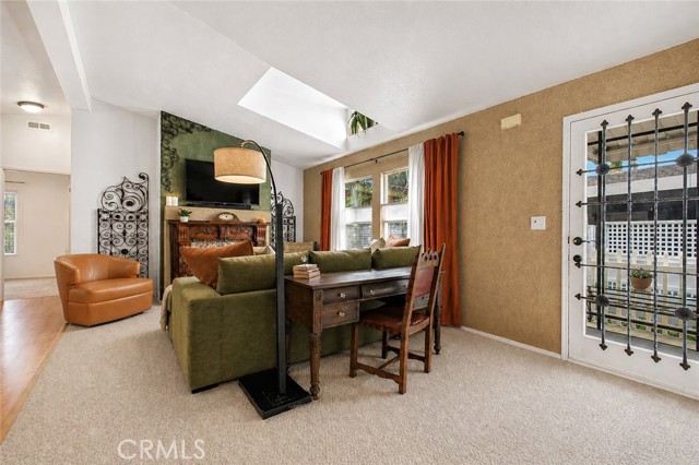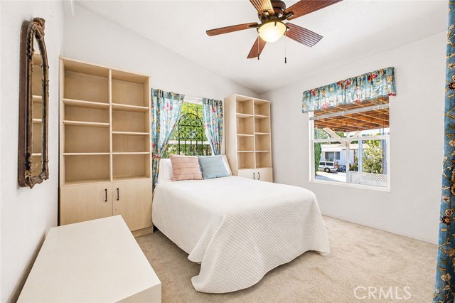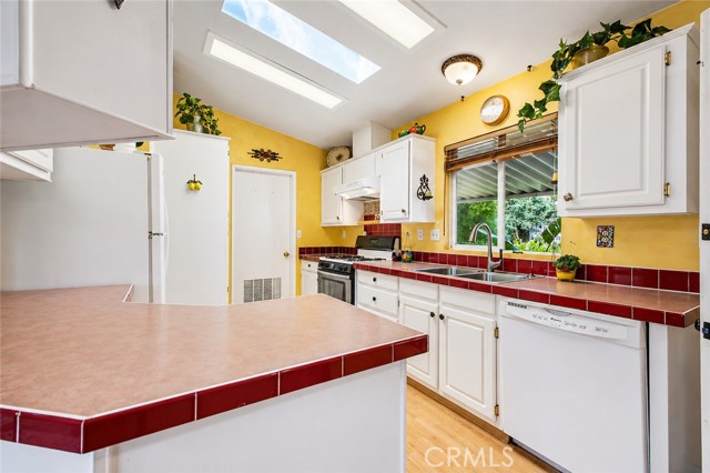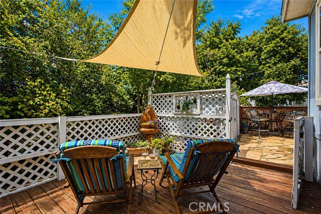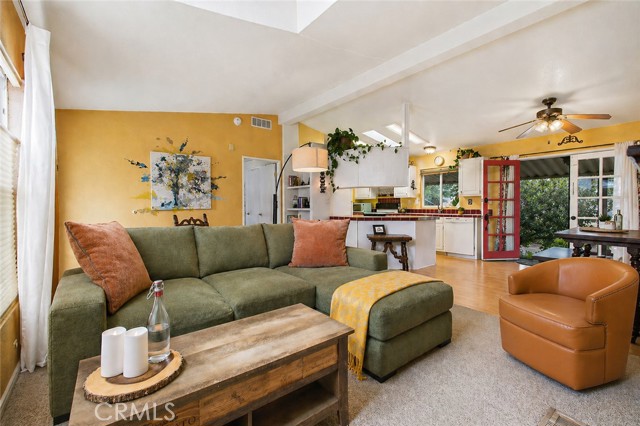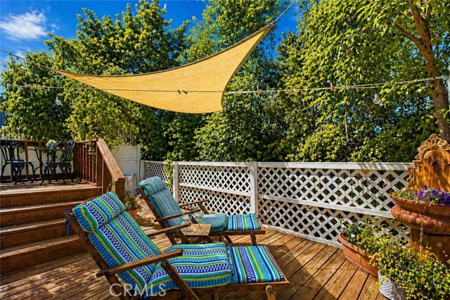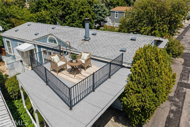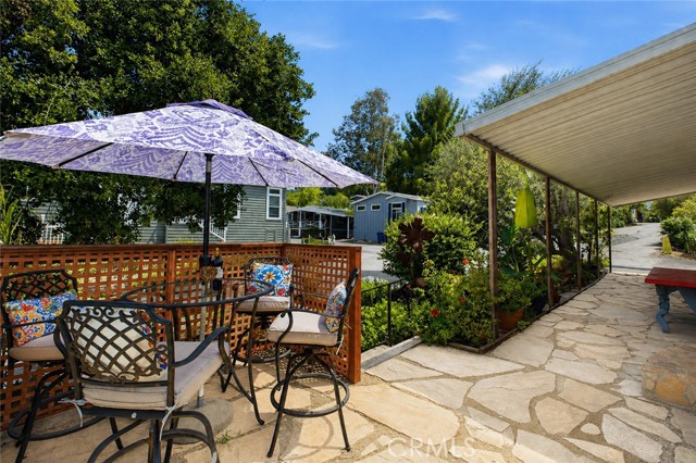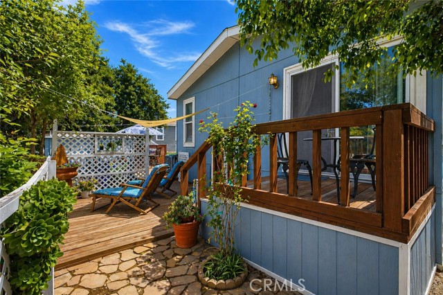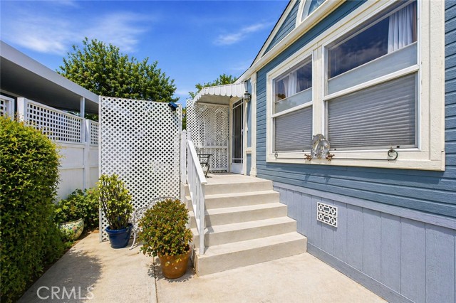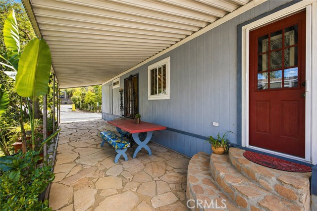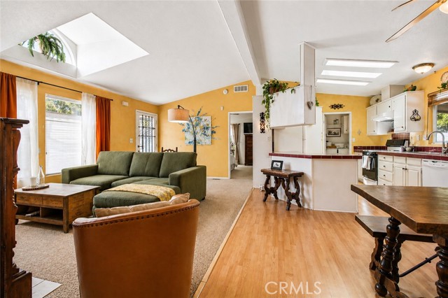 Bright and inviting home filled with natural light, featuring skylights in the kitchen and living room, plus charming French doors. The primary suite offers an en-suite bath and sliding glass doors opening to a private deck and patio. Enjoy an open-concept kitchen and a huge corner lot with a beautifully maintained, low-maintenance garden—an artist’s dream with multiple outdoor spaces, including a serene sitting or yoga deck. Interior highlights include a gas fireplace with custom mosaic surround, custom Hunter Douglas blinds in the living room, and a custom glass and wrought iron front door. Two separate carports on either end of the house for (1 car each), 4 entry points, and a 2023 water heater with warranty. Land lease is $1,326.07/mo; secured property tax approx. $55/mo. Close to the 101, shops, dining, and ~18 minutes to Topanga Beach. Located in highly saught LVUSD school district. This home won't last on the market long- schedule your showing before it's gone!