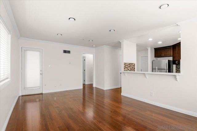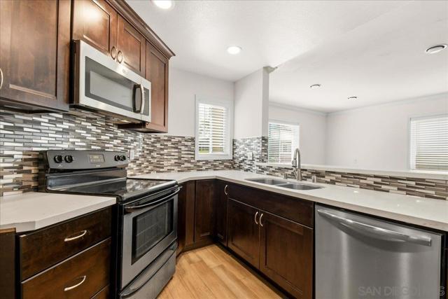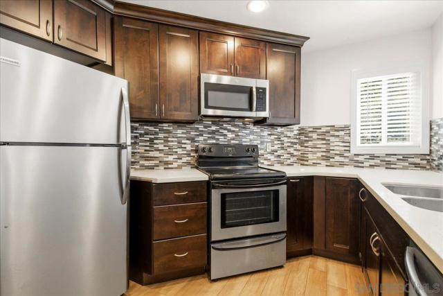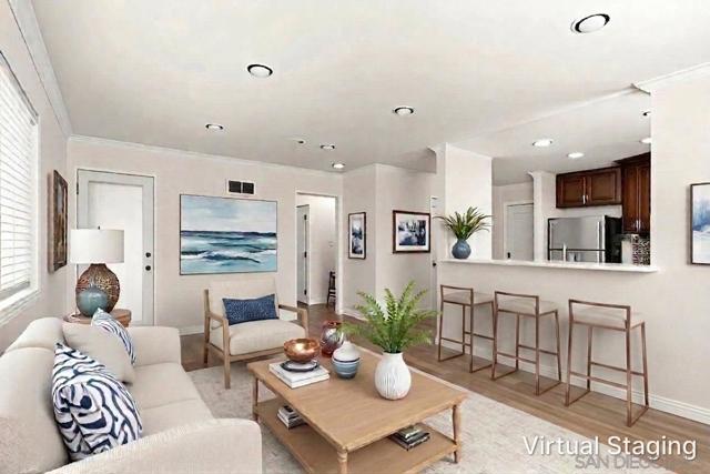 Free Lender paid 1% rate buy down for Year 1! Charming, beautifully upgraded light and bright condo in the desirable Verano complex in UTC! Spacious 1 Bedroom 1 Bath condo with 704 square feet of living space. Perfect 1st story location with no road noise and faces south with plenty of afternoon sunlight. Upgrades include new swiss coffee white interior paint, gorgeous luxury vinyl plank flooring and double pane windows. The modern kitchen is upgraded with sleek backsplash tiles, creme quartz counters, stainless steel appliances, and recessed lighting. The Bathroom has been upgraded with a modern vanity and custom lighting fixture. The spacious bedroom includes a ceiling fan with luxury vinyl plank flooring. Additional features include in unit washer and dryer, a walk in closet, and extra storage space on the exterior patio. 1 assigned parking space. Fantastic location near I-5, La Jolla Beaches, UTC Westfield Mall, UCSD, and Vons Shopping center. Come see! The community of Verano has resort style amenities including a community Pool and Spa, BBQ area, Clubhouse, and Fitness center. Verano HOA fee includes water, trash pick up, exterior maintenance including stucco, roof and community landscaping. Enjoy access to the La Jolla Colony Park for walking and jogging trails, picnics, and summer concerts.