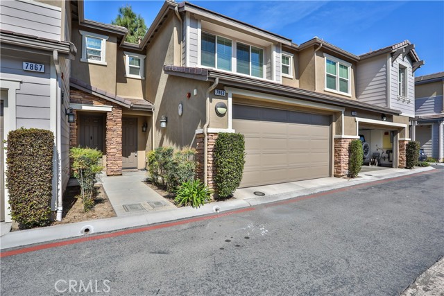 Located in a secure community with low HOA fees, this home offers comfort, functionality, and a well-designed layout. The kitchen overlooks the dining area, creating an open floorplan filled with great natural lighting—ideal for both everyday living and entertaining. A convenient first-floor bedroom and bathroom provide flexibility for guests, multigenerational living, or a home office, while the first-floor laundry closet adds to the home’s practical appeal. Upstairs, the spacious primary suite features an expansive bathroom and private access to a balcony, and an additional bedroom offers comfortable living space. Residents enjoy resort-style community amenities while being just minutes from shopping, dining, and freeway access at Victoria Gardens. Truly move-in ready!