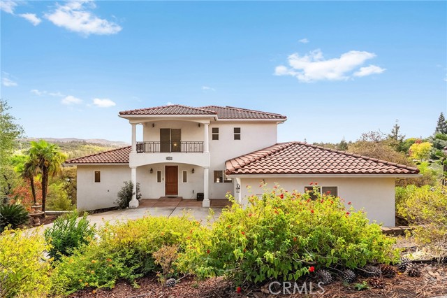 Welcome to this stunning custom-built home perfectly perched to capture serene views of the surrounding hills and Lake Oroville. Thoughtfully designed across three spacious levels, this property offers a versatile layout ideal for multi-generational living, guests, or anyone seeking both comfort and functionality. Enter on the main level, where the open-concept living, dining, and kitchen areas flow beautifully together for easy entertaining. The living room features a cozy gas fireplace, creating the perfect spot to gather and enjoy peaceful evenings or crisp winter mornings. Enjoy the convenience of direct garage access for effortless unloading, plus a guest half bath and a full laundry room. This level also features one of two primary suites complete with its own en suite bathroom, wet bar, and kitchenette—perfect for extended family or guests. Step out onto the expansive rear deck to take in the peaceful views of the hills and lake—accessible from both the living area and primary suite. Upstairs, you’ll find two generously sized bedrooms, each with balcony access overlooking the back. A full bathroom offers dual sinks, a walk-in shower, and a private toilet room. A bright loft space adds flexibility for a reading nook, office, or play area and has an additional balcony facing the front. The lower level features a second primary suite with its own private entry, making it ideal for guests, in-laws, or even rental potential. On the opposite side, you’ll find a finished workshop with a full bath—ready to serve as a hobby space, studio, or home gym. Set on nearly half an acre, there’s plenty of room for gardening, gatherings, or simply enjoying the quiet surroundings. With owned solar, you’ll enjoy energy efficiency and long-term savings. If you’ve been searching for a one-of-a-kind property with space, flexibility, and incredible views, this Oroville gem checks every box.