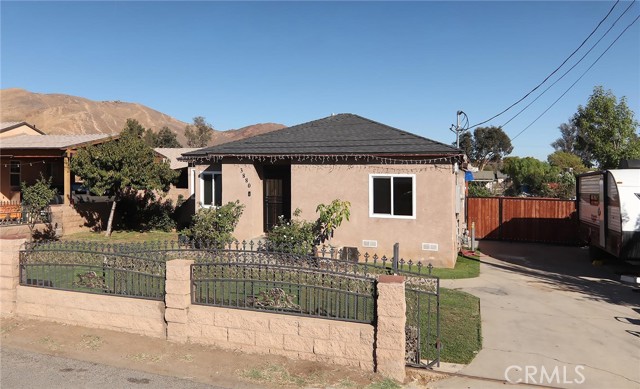 Your Dream Home Awaits – Affordable, Modern, and Full of Possibilities! Discover this charming 2-bed, 1-bath starter home, perfectly blending modern upgrades with endless potential. Nestled in a private serene quiet neighborhood yet convenient location, it’s close to amenities, including easy freeway access, and The Shops at Jurupa Valley, a new vibrant 32-Acre shopping destination with anchor tenants such as Target, In-N-Out, Pollo Campero, Ross, Burlington, and more. This location is close to everything but feels like a peaceful ranch retreat. Lovingly updated, this home boasts rustic laminate wood flooring, ceiling fans, AC, new windows, and a stylish front living room. The updated kitchen boasts cherrywood cabinetry and granite countertops, perfect for home chefs of all kinds. Step outside to a versatile backyard designed for your lifestyle: a spacious plywood-covered patio with decorative tiled concrete, ideal for creating an outdoor kitchen or entertaining space, perfect for family gatherings or even a “dirty kitchen”. The yard also features a chicken coop, dog kennel, turf play area, raised garden beds, and room for a pool. Grow your own food with an impressive array of fruit trees, including Avocado, Orange, Myers Lemon, Mexican Lemon, Guava, Apple, Blood Orange, Pomegranate, Pear, Plum, and Nectarine, all supported by front-yard sprinklers. With a spacious front driveway for RV parking and room for a detached garage or an ADU, this home is a smart investment -- ripe to add amenities for rental income or multigenerational living. One of the most affordable homes in the area, it’s perfect for first-time buyers, growing families, or savvy investors. Don’t miss out—join us at the open house and envision your future in this welcoming, opportunity-filled home!