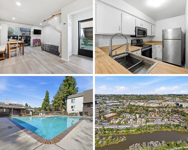 Welcome to this inviting ground-level studio tucked into the heart of Mission Valley. Designed for comfort and efficiency, the space features vinyl plank flooring, a functional kitchen, and a flexible living and sleeping area that feels open and easy to live in. Sliding glass doors lead to a private patio, offering a seamless indoor-outdoor feel and a quiet spot for morning coffee or evening downtime. Neutral finishes throughout make the home move-in ready while still leaving room to personalize. Residents enjoy access to two swimming pools, three laundry facilities, and a community clubhouse. Centrally located near shopping, dining, freeways, and public transit, this studio is a great fit for a first-time buyer, commuter, or investor looking for convenience, comfort, and location.