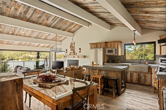 Transcend the ordinary and step into 28778 Palisades Drive to discover the ultimate Lake Arrowhead getaway just in time for summer! One of a kind lakefront unlike any other! Incredible, wide-angle lake views anchor the stunning great room with unique reclaimed wood floors throughout and a custom “NanaWall” folding glass door system allows for a true indoor-outdoor experience rarely found in mountain homes. The stunning kitchen features custom vintage wood cabinetry, under counter lighting, Viking fridge/freezer and dishwasher, CornuFé range, Brizzo faucet and custom vintage wood center island. Rest and relaxation is ensured in the main level primary suite featuring soaring vaulted ceiling and where folding glass doors seamlessly frame panoramic lake views along with a spacious spa-like bath. The lower level contains a spacious entertainment room with beautiful lake and tree views along with two ensuite bedrooms perfect for family and friends. A unique and versatile lower patio area with BBQ, sink and refrigerator is perfect for lakeside entertaining and only steps away to the completely rebuilt single-slip dock with hydrohoist and remodeled dock house. Amongst the many, though certainly not all, features of this remarkable home are: updated PEX plumbing and electrical systems, newer metal roof, custom cedar and white doug-fir siding, Brizzo fixtures throughout, custom NanaWall windows and doors throughout, newer heating and central AC, top of the line appliances throughout and so much more. An exceptional opportunity to acquire one of the most unique lakefront properties on the market today!