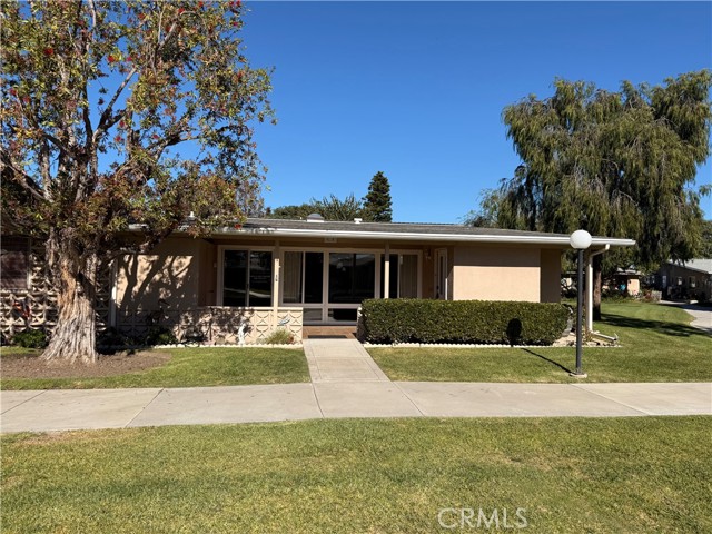 Discover this beautifully situated 2-bedroom, 1-bath Leisure World home in the heart of Mutual 4, ideally positioned on a wide, green-belt setting with mature shade trees and open-air ambiance. This expanded corner unit offers a rare combination of indoor comfort and outdoor charm — with an oversized tiled front patio perfect for morning coffee or afternoon relaxation. Inside, you’ll find a bright and inviting living area with floor-to-ceiling dual-pane windows that bring in natural light and tranquil greenbelt views. The spacious kitchen features abundant cabinet space, upgraded hardware, and a classic layout ready for your designer touches. Both bedrooms provide privacy and comfort, while the bath includes an extended vanity and a step-in shower with frosted glass doors. Upgrades include laminate wood-style flooring, dual-pane windows, and multiple windows with great views. The large front patio and views of the side greenbelt create an open, airy feel throughout the home. Located close to convenient parking, this Mutual 4 location offers easy access to Clubhouse 2, sports courts, the golf course, and all community amenities — from swimming and fitness to more than 200 clubs and activities. Mutual  (Carport 57, Space 8) SENIOR COMMUNITY-OFFERS THE FOLLOWING AMENITIES: 9 Hole Golf Course, Swimming Pool, Jacuzzi, Gym, Table Tennis, Shuffle Board, Billiards, Pickle Ball, and Bocce Ball courts. Amphitheater, 6 Clubhouses featuring: Art Room, Sewing, Crafts, Wood Shops, Lapidary, Pool Tables, Over 200 Clubs, LWSB is a Security-Guard-Gated Community. Also, the Library, Friends of the Library Bookstore, Credit Union, Health Care Center, Pharmacy, and Post Office.