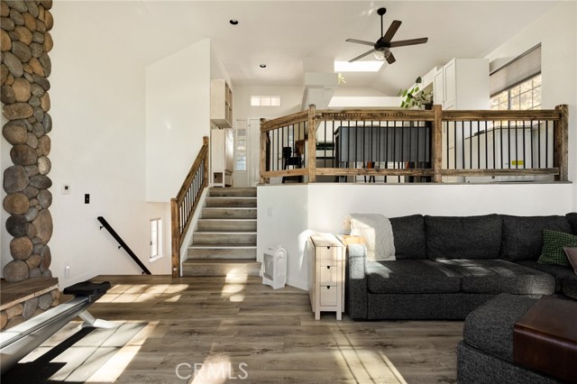 Pride of ownership shines throughout this beautifully maintained 3-bedroom, 2.5-bath Rim Forest home, thoughtfully built by Kenney Anderson. Ideally situated just minutes from Hwy 18, this commuter-friendly property offers the perfect blend of mountain serenity and everyday convenience. Step inside to discover soaring ceilings, fresh interior paint, new wood-style vinyl flooring, and an abundance of natural light. The open-concept layout connects the kitchen and dining area to the spacious living room — perfect for entertaining or unwinding with peaceful treetop views. Wake up to breathtaking morning sunrises through the large back windows or from the expansive rear deck, where you can enjoy your coffee surrounded by nature. Additional highlights include some newer dual-pane windows, Hardybacker siding on the rear, a newer water heater and furnace, and a brand-new roof for added peace of mind. Multiple decks, generous storage, and parking for four complete this move-in ready mountain retreat — a true gem in the heart of Rim Forest.