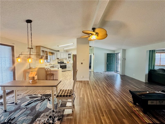 Welcome to Los Ranchos All-Ages Manufactured Home Park! Nestled in the serene community of Apple Valley, this park features beautiful grounds with a peaceful lake, two sparkling pools, tennis courts, and a playground area for residents to enjoy. This home offers an open layout with a spacious living room that flows into the kitchen, complete with a breakfast bar and a separate dining area—perfect for entertaining. The split floor plan provides two bedrooms and a bathroom on one side, while the large primary suite sits privately off the living room. The primary bedroom includes a walk-in closet and a roomy en suite bathroom. Additional features include an indoor laundry room with washer and dryer, a large covered porch, and a fenced yard ideal for gardening or relaxing. Two sizable storage sheds are also included. Enjoy the mountain views from your porch and imagine the possibilities—with a little TLC, this home could truly shine!