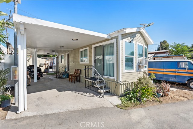 Welcome to this charming mobile home located in the desirable Villa Magnolia 55+ senior community. Enter into the light-filled living room and dining area. Enjoy an open-concept kitchen with a center island, Formica countertops, double oven, gas cooktop, microwave, refrigerator, and sink, plus a sliding glass door leading to a cozy porch and an enclosed sunroom — ideal for relaxing or entertaining. Added ceiling fans for year-round comfort. The primary bedroom has a private en-suite bathroom with a single sink vanity and a shower/tub combo. The guest bedroom also features a ceiling fan. The guest bathroom in the hallway boasts a single sink vanity and a shower/tub combination. Convenient indoor laundry, washer and dryer included adding ease to daily living. Enjoy your morning coffee on the welcoming front porch or sunroom. Two car covered carport with a shed. Nice backyard with two orange trees. Community amenities include RV parking, a refreshing swimming pool, club house, gym and a commuter-friendly location close to shopping, dining, and freeway access. Don’t miss this opportunity to enjoy comfortable, low-maintenance living in a vibrant 55+ community!