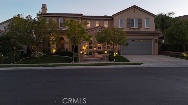 Breathtaking view estate overlooking the Cleveland National Forest. Nestled on a quiet street within the prestigious, gated community of The Retreat, this exceptional residence is designed to impress even the most discerning buyers. Offering over 4,700 square feet of refined living space, the home features 5 bedrooms, 5 bathrooms, a bonus room, a theater room, and a private office. The chef's island kitchen showcases high-end stainless steel built-in appliances, including a Sub-Zero refrigerator, granite countertops and backsplash, a 6-burner range, double ovens, under-cabinet lighting, and a walk-in pantry. Elegant finishes include travertine flooring with designer inlays, formal living and dining rooms, crown molding, plantation shutters, and a custom wrought-iron staircase. Solar film on windows throughout enhances comfort and efficiency while preserving the home's bright, airy feel. French doors open to a stunning central courtyard with a fireplace, creating seamless indoor-outdoor living. The spacious family room features a beautiful stone fireplace, a built-in desk and bookshelves, ceiling fans, and detailed door casings. Upstairs, enjoy Jack-and-Jill bedrooms, while the luxurious primary suite offers a coffered ceiling, private retreat, view deck, and spa-like bath with travertine shower, soaking tub, and dual vanities. The resort-style backyard is complete and spa, reef step entry, stamped flagstone accents, and mature lemon trees-perfect for outdoor entertaining and garden-to-table living. Additional highlights include three fireplaces and a three-car tandem garage. Conveniently located near Dos Lagos dining, shopping, and entertainment-this is luxury living at its finest.