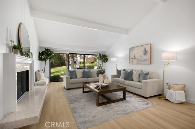 The gated community of Friendly Woods is a much sought after enclave of only 36 homes in Whittier - an oasis with manicured greenery, a swimming pool, spa and tennis court, yet convenient to civilization. This home in particular has been freshly renovated to please the most discerning home buyer. The "beachy" floors and warm white walls give this home an expansive, inviting vibe. The large galley kitchen has new flat front cabinet doors and drawer fronts (easy to clean), quartz counters, stainless 5 burner cook top, double oven and stainless fridge and dishwasher. The dining nook has glass doors overlooking your private courtyard, a small secretary's desk and washer/dryer tucked into a closet. The great room is perfect for entertaining. Imagine gathering for a meal with your loved ones, the ambience of the fireplace, the expansive sliding doors that open onto your patio and the green belt beyond. From the great room you can climb the spiral staircase up to the loft which makes a terrific home office - it's private without feeling "locked away" while you work. While you're up there, be sure to look for the secret doors in the paneling that conceal book shelves and a filing cabinet. Both bedrooms are quite large. The spa-like primary en-suite bath has a gorgeous walk-in shower with custom tile work, a vessel soaking tub with floor mounted fixtures, double sinks and lots of storage. The primary bedroom has a walk in closet + a second smaller closet, a built-in vanity and a gas fireplace - you'll never want to leave. Even the secondary bedroom is large with original floor to ceiling windows overlooking your private front court yard. Home has an attached, oversized two-car garage with a utility area and ample guest parking available. GATE WILL BE OPEN DURING OPEN HOUSE HOURS