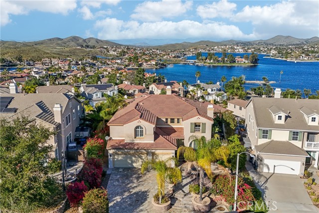 Truly stunning 5-bed, 4.5-bath home featuring two bonus lofts, great curb appeal, an attached 4-car garage, and located on a cul-de-sac street! The spacious interior offers gorgeous crown molding, recessed lighting, and an abundance of natural light. There is a formal living room, a formal dining room with a tray ceiling and beautiful chandelier, and a huge family room with large picture windows to take in the views. The kitchen features quartz countertops, a large center island, and breakfast bar seating. A first-floor bedroom with an ensuite bath, a half bathroom for guests, and the laundry room complete the main level. Take the grand staircase to the second floor, where you’ll be greeted by the first large bonus loft space. There are also four additional bedrooms, including the massive primary suite. Each bedroom has access to a bathroom, and the primary suite features a private balcony with gorgeous views, a spa-like ensuite with a soaking tub, separate shower, and a large walk-in closet. A second loft completes the upstairs. Enjoy the low-maintenance backyard with wrought iron fencing that allows you to take in the beautiful Canyon Lake views. The yard also features stamped concrete, rockscaping, and lush greenery. Residents also get to enjoy a sparkling pool and spa, tennis courts, and a park with playground, baseball field, basketball court, and volleyball court. Conveniently located near schools, shopping, and dining, and just a short drive from the 15 Freeway!
