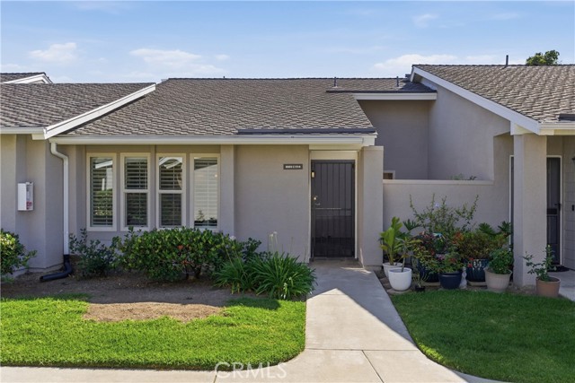 Beautifully upgraded Marina model in a quiet location close to parking. You get a sense of calm as you walk into the light filled patio where your green thumb can thrive in the lush garden. Slate flooring elevates the space ready for you to sit and sip your morning coffee. The spacious living room offers gleaming tile floors, vaulted ceilings and a large slider leading to the patio. Custom built-in buffet in the dining room is great for all your holiday dishes. Bright kitchen over looks the patio and has white cabinets, gas range, microwave and dishwasher. Remodeled bathrooms have custom vanities and upgraded tile. The primary bathroom has double sinks, and a separate shower area. A second slate patio is just through the slider. Scraped ceiling, recessed lighting and inside laundry make this a great place to spend your golden years. Huntington Landmark is a guard gated senior community offering state of the art facilities with open greenbelts and park areas great for walks or your pets, crystal blue Olympic swimming pools, spa, tennis courts and for you golfers your very own putting green, shuffle board, gym and weight room, wood working, ceramics, library, billiard room, RV storage and much more!!
