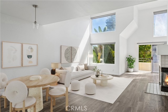 ***BRAND NEW MILGARD WINDOWS AND SLIDING DOORS THROUGHOUT THE PROPERTY*** Nestled in the sought-after community of Rainbow Ridge, this updated 2 bedroom, 2 bathroom residence combines comfort, style, and convenience. A dramatic entry with soaring ceilings and expansive windows fills the interiors with natural light, enhancing the sense of space. The open-concept living area features a tiled fireplace and flows seamlessly to a large private balcony, perfect for both relaxing and entertaining. The main-floor primary suite offers a spacious walk-in closet and a well appointed full bath. Upstairs, the secondary bedroom provides privacy with its own en-suite bath and closet. The kitchen is designed with efficiency and function, opening to the dining and living areas for a connected lifestyle. Recent upgrades add to the home’s appeal, including luxury plank flooring, remodeled bathrooms with modern finishes, motorized window shades, a new water heater, and a complete plumbing re-pipe in 2025. Thoughtful details throughout reflect quality and attention to design. Residents of Rainbow Ridge enjoy tree lined surroundings and access to Lake Mission Viejo membership, which includes lakeside activities, picnic areas, summer concerts, and movie nights. The community is also ideally located near shopping, dining, entertainment, and major freeways, making it a perfect blend of comfort and convenience.