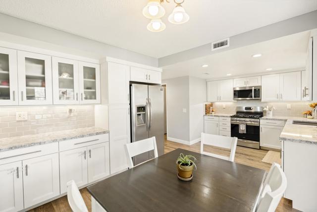 Welcome home to an idyllic setting at the end of a cul-de-sac. This tucked away secret is situated in the heart of Linda Vista and offers an ideal Centre city living experience. Located just minutes to Mission Valley, Clairemont, and Kearny Mesa shopping, restaurants and amenities, this location is convenience defined! The home is an elegant townhome boasting flair, sensibility and exceptional function! As arguably the premier end unit of the entire community, the uninhibited western exposure provides wonderful open treetop views, and a sun-drenched experience for the entire home. The living room flows onto a wonderful front terrace retreat, which screams entertainment or complete detachment, you pick. Generous sized living and dining rooms give you plenty of space to spread out and live comfortably, complete with fireplace and powder room. *See Supplement for Details* The galley kitchen is complete with a great space for home office, as it’s currently utilized, or a cute breakfast nook with back balcony. Upstairs both bedrooms have had new Coretec LVP installed, plus the window treatments have been upgraded with Veneta window blinds. Each room is spacious, and it truly is a dual primary bedroom setup with en-suites for each. They both feature soaring ceilings which create a much larger feel. Not to be missed is a very functional laundry room that boasts side-by-side laundry set up. On the lowest level is what can only be termed a grand garage for this kind of property type and price. It is fixed with extensive wall mounted tall storage cabinetry. But that’s not all! This unit has an additional bonus room that you almost NEVER find anywhere. Although currently used for storage, this could easily be repurposed for an office, workshop or craft room. Please note it is not part of the square footage listed and is a big bonus! The community of Hidden Canyon truly is hidden. It’s just down from Mesa College and unless you knew about it from a friend, chances are you would never know it existed. The complex is unique in that it features well-spaced buildings, has an amazing green space between the buildings and offers a beautiful pool and spa facility. This PUD community truly stands out in front… but still hidden…