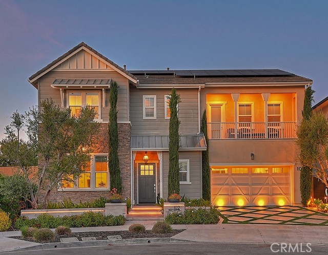 Welcome to Grove at Orchard Hills, a 24-hour guard-gated community in Irvine. This beautifully maintained residence offers 4 bedrooms and 5 bathrooms, featuring two dining areas, multiple living spaces, a fully equipped separate prep kitchen, and an attached 2-car garage, a functional layout designed for both comfortable daily living and effortless entertaining. Upon entry, a main-level bedroom suite with walk-in closet and private bath provides ideal flexibility for guests or multigenerational living. The home opens into a formal dining area, expansive great room, and gourmet kitchen centered around a large island; a separate prep kitchen adds additional cooking space and refrigeration, ideal for entertaining while maintaining a clean main kitchen. The second level functions as a private residential retreat thoughtfully designed for both comfort and practicality. The expansive primary suite serves as a serene sanctuary, featuring multiple windows that create a bright yet peaceful ambiance. The spa inspired primary bathroom includes dual vanities, a soaking tub, and a separate walk-in shower, while two oversized walk-in closets provide exceptional storage, organization, and dressing space rarely found in comparable homes. Two well appointed secondary bedrooms offer excellent natural light and comfortable proportions, including access to a private balcony that enhances airflow and indoor and outdoor continuity. A spacious central loft provides a flexible gathering area ideal for a secondary family room, media lounge, or study space, naturally connecting the upper level living areas. Backyard sliding glass doors connect the interior to a covered California room and professionally upgraded outdoor space featuring custom hardscape, built-in BBQ, fire feature, and decorative water element which creates a private outdoor setting for year-round Southern California living. The home is also equipped with fully paid-off solar panels, offering enhanced energy efficiency and long-term cost savings. Located within one of Irvine’s most prestigious neighborhoods and served by award winning schools, the home is just minutes from Orchard Hills Shopping Center, dining, and major freeway access. Offering a rare balance of luxury, privacy, and convenience, this exceptional residence is not to be missed!
