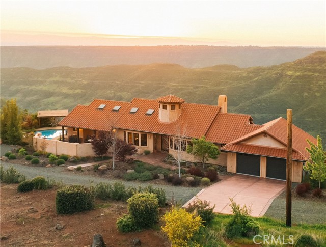 Set among the tranquil pines of Paradise, this exceptional custom home captures sweeping canyon and city-light views of Chico, a rare blend of fine craftsmanship, architectural integrity, and natural beauty. Inside, open-beam ceilings, Saltillo tile floors, and expansive wood-clad windows fill the interiors with light and warmth. Every detail reflects timeless quality, from custom cabinetry and high-end appliances to thoughtfully designed spaces that flow seamlessly for living and entertaining. The outdoor experience is equally impressive. Expansive decking overlooks the canyon, while a steel pergola shades the pool and spa with a soothing fountain feature. A private walled courtyard adds charm and intimacy. Professionally landscaped by Del Stuermer, the grounds offer mature plantings, full irrigation, and year-round appeal. Additional features include a double garage with built-ins, a tile roof, and partial fencing that enhance both form and function. Whether gathered with friends, relaxing poolside, or taking in the sunset over the ridge, this home offers a sense of serenity rarely found. Located minutes from Paradise Lake for kayaking, fishing, and hiking, and near local parks including Billie Park, this property offers the best of luxury, nature, and Northern California living—an exceptional retreat where craftsmanship and setting come together in perfect harmony.