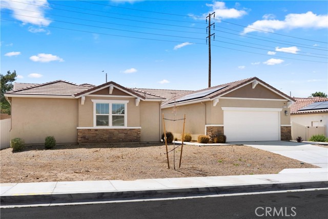 Welcome to this stunning Single-Story residence offering 2,514 sq. ft. of thoughtfully designed living space with 4 Bedrooms, 3 Bathrooms, perfectly blending functionality and luxury. With no neighbors behind and stunning views of the local mountains, this home has a peaceful feeling. Three of the Bedrooms are located in the front of the home, two of which are connected by a Jack and Jill bathroom, and one with its own hallway bathroom providing comfort for family or guests. The Primary Bedroom Suite is tucked away at the back of the home offering added privacy. The Primary suite feels like a peaceful retreat with a custom barn door leading into a spa-like bathroom featuring dual sinks, a walk-in shower, an oversized soaking tub, separate toilet room, and a spacious walk-in closet with custom shoe shelving. The heart of the home is the Gourmet Kitchen boasting white cabinetry, Carrera marble countertops, an extended center island/countertop, stainless steel appliances, a 36-inch commercial range top, and a professional-grade stainless steel sink. It is OPEN to the Family Room and Dining Area and promotes family gatherings and entertaining. There is a Good size walk-in Pantry for food storage. Practical upgrades include a three-car Tandem Garage equipped with a tankless water heater, 240V EV charging station and two 1,500-lb overhead storage racks. The laundry room is indoors, and comes with built-in shelving. PAID OFF SOLAR through SunRun and NO HOA are MAJOR added benefits! The Whole house fan helps cool off the home quickly and efficiently during the warmer months. There is ample room for all your "toys" as this property features an extended driveway with vehicle-rated pavers designed for vehicle or boat parking at the Front Left side of the home. Enjoy California outdoor living with an extended concrete patio, alumawood patio cover, and ceiling fans with lights. Use your imagination to design the rest of the Back yard to your own desires. This home checks every box with its combination of modern elegance, thoughtful upgrades, Paid Off Solar and No HOA.